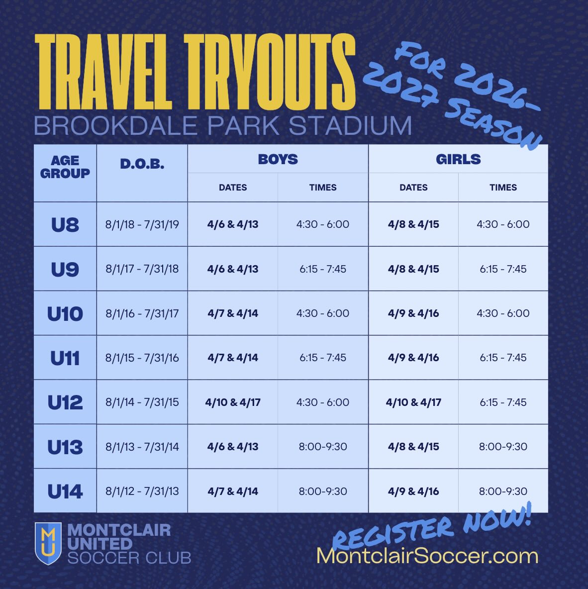 Boys & Girls Travel Tryouts 2026-2027